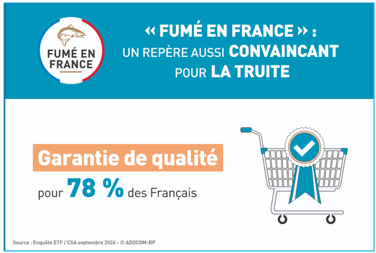 Pour les Français, la présence du logo « Fumé en France » sur les emballages constitue une garantie de qualité. C’est ce que disent 78 % d’entre eux lorsqu’il s’agit des truites fumées et 76 % pour lorsqu’il s’agit des saumons fumés.