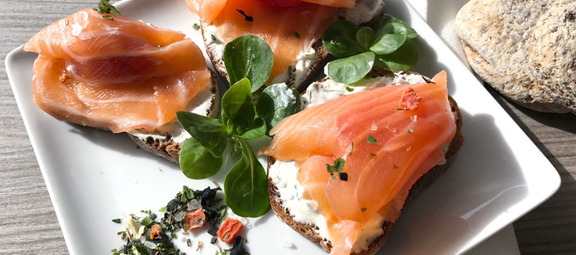 Les mini tartines de pain noir Saumon Fumé crème tzatziki